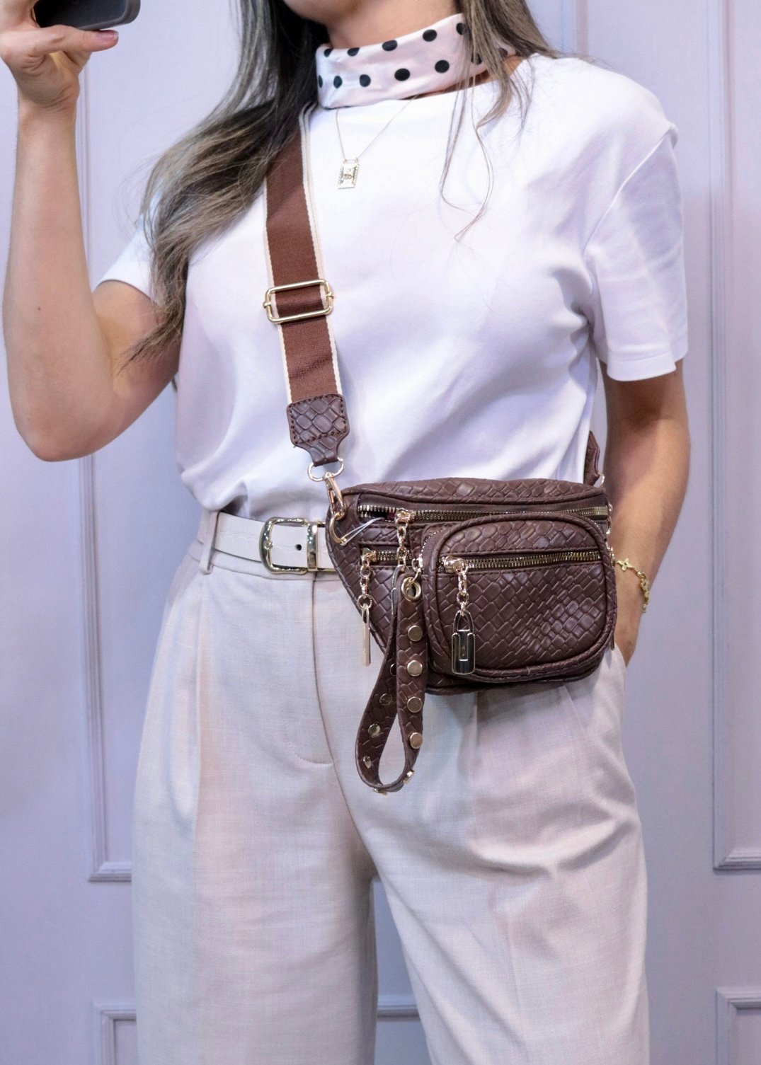 Incluye strap manos libres ajustable.